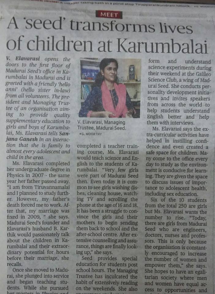 A Pat on the back goes a long way. The appreciation and recognition which come on the way stimulates us, gets us more friends, and reaches wider public. Have a look at news articles published on Madurai Seed overall service and specific activities in various Tamil and English news papers over the period.